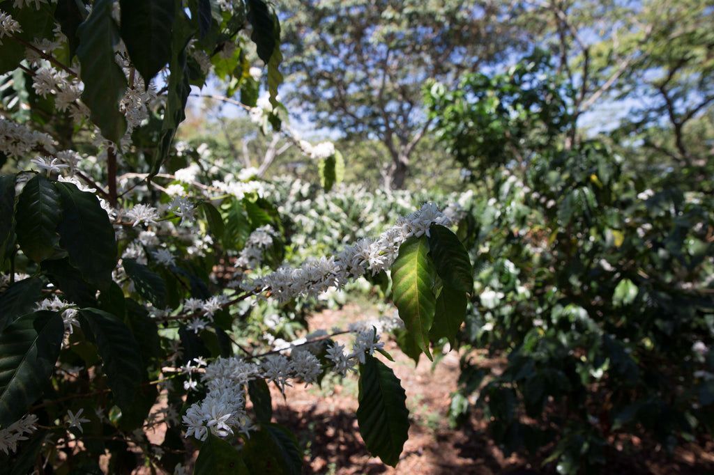 Finca Sabanetas is a coffee farm in Chalchuapa growing coffee trees under the shade of other species. The fragrant coffee blossoms and lush green leaves covering the branches indicate the trees’ health. The soil here is rich and growing traditional varieties has been successful for owners Luiz Mario and Beatrice Pimentel.